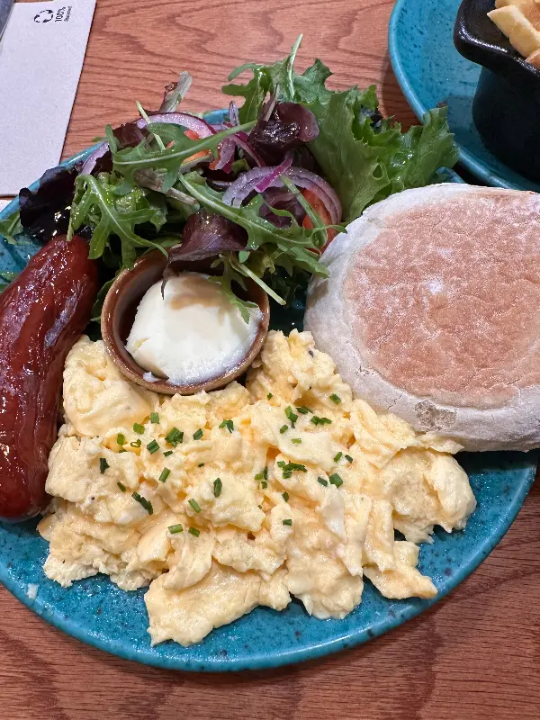 메뉴판을 펼쳐 들고 고민 끝에 모닝 세트를 주문했습니다. 구수한 커피 향이 코를 간지럽히고, 곧이어 등장한 음식들은 보기만 해도 군침이 돌았습니다. 특히 어린 새싹으로 만든 샐러드는 신선함이 가득했고, 평소에 즐겨 먹지 않던 소시지조차 훌륭했습니다. 베이컨 대신 소시지로 변경할 수 있는 옵션은 저에게는 최고의 선택이었죠. 촉촉한 스크램블과 버터 향 가득한 빵은 환상의 조합이었고, 곁들여 마시는 아메리카노는 깔끔하게 입안을 정리해 주었습니다.