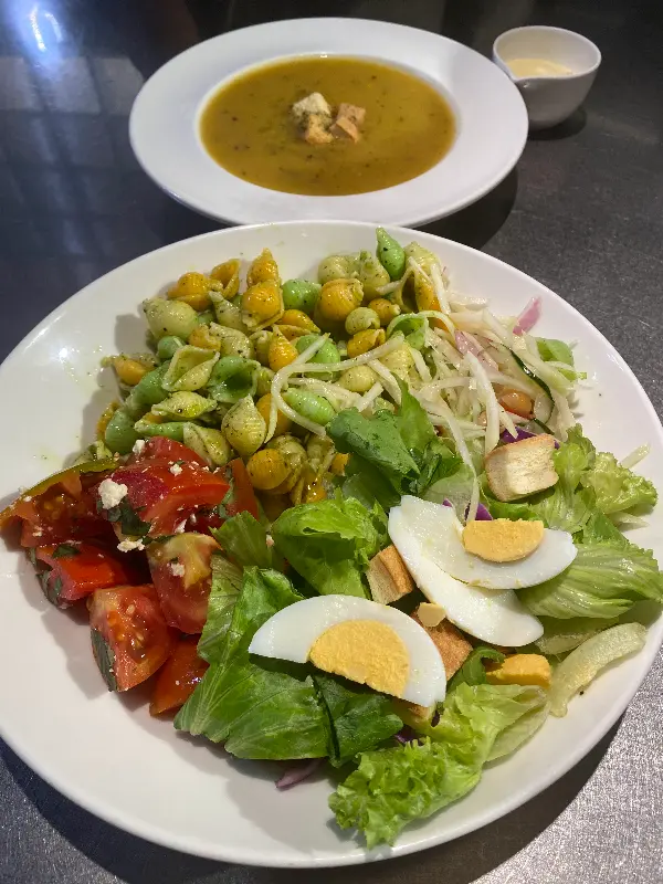 특히, 샐러드와 함께 제공되는 따뜻한 수프는 차가운 샐러드를 먹는 동안 몸을 따뜻하게 유지시켜주는 역할을 했다. 밍밍한 버섯 육수 같다는 후기도 있었지만, 내 입맛에는 딱 좋았다. 은은한 버섯 향이 샐러드의 풍미를 더욱 깊게 만들어주는 듯했다.