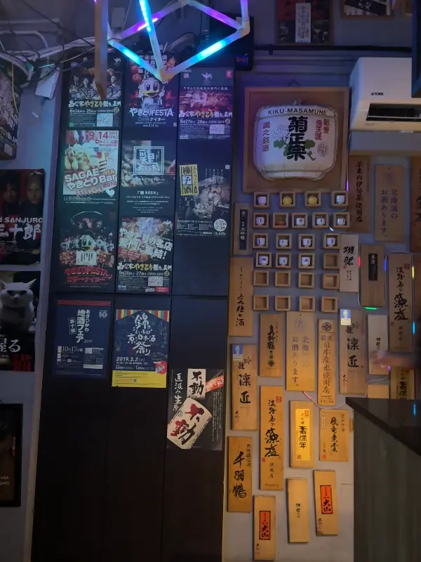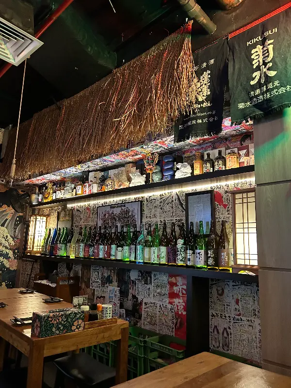 작은 나무 문을 열자, 눈앞에 펼쳐지는 것은 아늑하고 따뜻한 공간입니다. 은은한 조명이 나무 테이블을 비추고, 벽면에는 일본 포스터와 사케 병들이 가득 채워져 있습니다. 마치 일본의 작은 이자카야에 온 듯한 착각을 불러일으키죠.