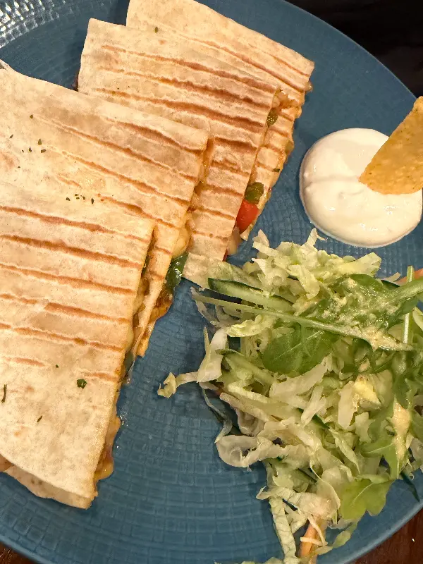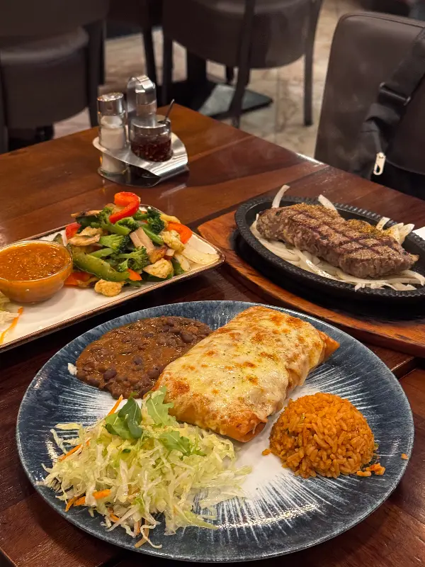 치킨 파히타는 뜨겁게 달궈진 팬에 볶은 닭고기와 양파, 피망 등을 또띠아에 싸서 먹는 요리였다. 닭고기는 닭갈비와 비슷한 맛이어서 한국인 입맛에 완벽하게 들어맞았다. 또띠아에 닭고기와 채소를 듬뿍 넣고, 살사 소스와 사워크림을 곁들여 먹으니 그야말로 꿀맛이었다. 특히 뜨거운 팬 덕분에 음식을 다 먹을 때까지 따뜻하게 즐길 수 있다는 점이 좋았다.