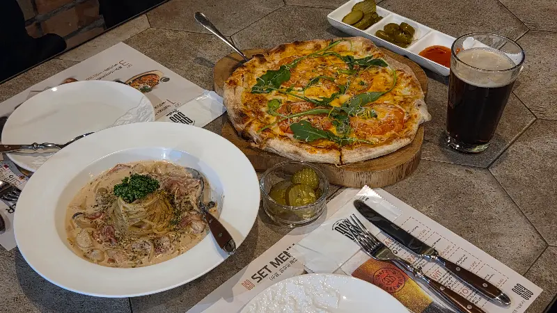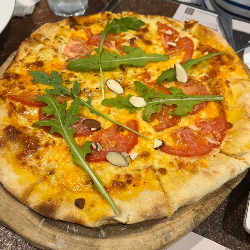 이 날, 우리는 마가리타 피자와 프라하993 버거를 주문했다. 먼저 마가리타 피자는 신선한 토마토와 루꼴라, 그리고 듬뿍 올려진 치즈의 조화가 환상적이었다. 쫄깃한 도우는 꼬다리까지 맛있게 먹을 수 있을 정도였다.