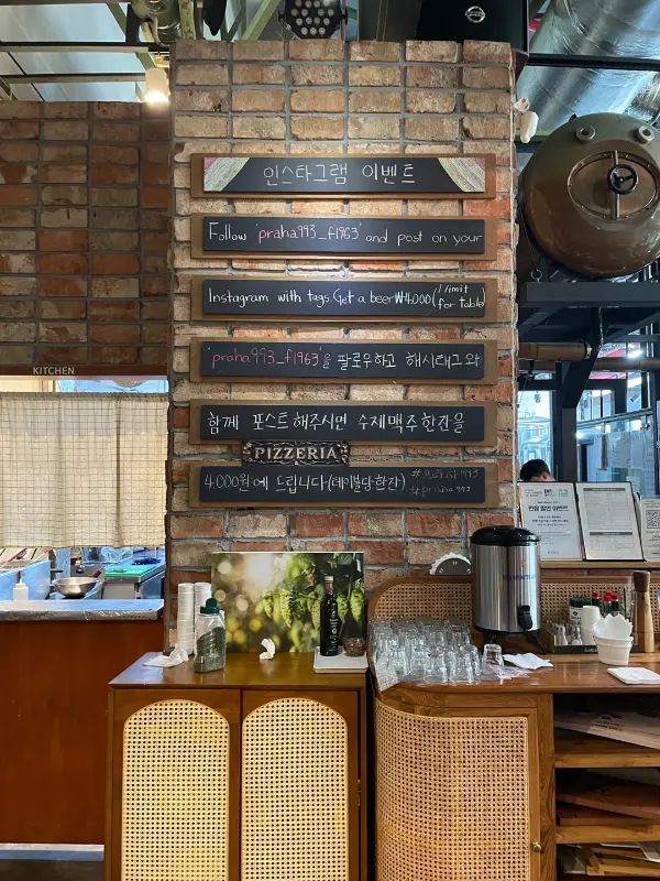 프라하993은 단순히 음식을 파는 곳이 아닌, 실제 양조장을 함께 운영하는 특별한 공간이었다. 커다란 맥주 제조 설비들이 웅장하게 자리 잡고 있는 모습은 그 자체로 하나의 볼거리였다. 펍 분위기 또한 너무나 마음에 들었는데, 넓고 안락한 공간은 데이트를 즐기기에도, 친구들과 편안하게 맥주 한잔 기울이기에도 안성맞춤이었다.