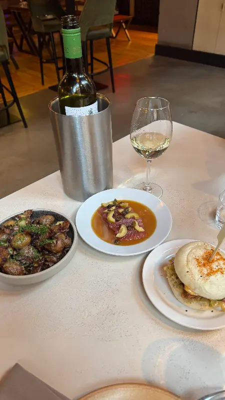 Exhibition은 다양하고 흥미로운 요리들이 많아서 여럿이 나눠 먹기에도 좋습니다. 칵테일도 정말 맛있어서 딱히 콕 집어 말하기 어려울 정도였습니다. 직원들은 친절하고 활기 넘쳤으며, 관광객인 저희에게 여러 가지 정보를 친절하게 알려주었습니다. 금요일 저녁 6시에 갔는데 사람이 거의 없어서 예약 시간보다 더 오래 앉아 있을 수 있었습니다. Exhibition을 강력 추천하는 맨체스터 맛집입니다!