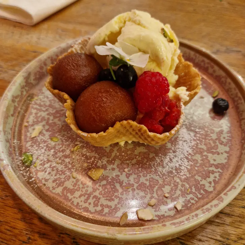 델리 하우스 카페는 음식뿐만 아니라 칵테일과 디저트도 훌륭하다는 평이 많았다. 특히, 차 라미슈(Chai Ramisu)라는 독특한 디저트는 꼭 먹어봐야 한다는 이야기에, 망설임 없이 주문했다. 칵테일은 상큼한 맛과 향이 일품이었고, 차 라미슈는 티라미수와 비슷한 듯하면서도, 인도 특유의 향신료가 더해져 독특한 풍미를 자아냈다. 부드러운 크림과 촉촉한 빵, 그리고 은은한 차 향이 어우러져 완벽한 디저트였다. 브라우니는 조금 끈적거린다는 평도 있었지만, 전반적으로 디저트의 퀄리티는 매우 만족스러웠다.
