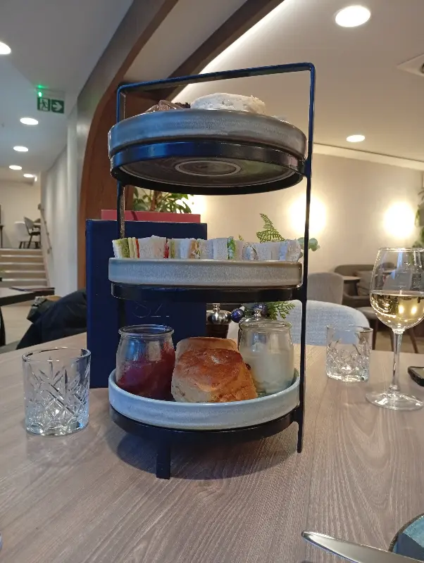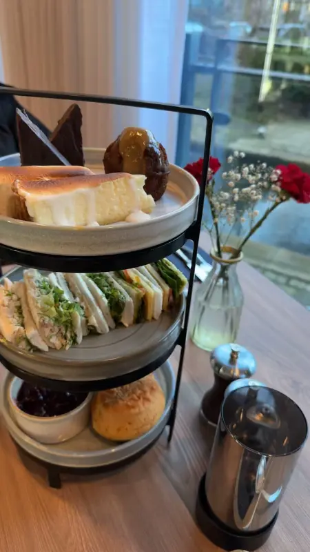 예약 덕분에 운하가 한눈에 보이는 창가 자리에 앉을 수 있었습니다. 직원분들의 친절한 안내와 따뜻한 미소 덕분에 편안하게 자리에 앉아 메뉴를 천천히 둘러볼 수 있었습니다. 창밖으로는 유유히 흐르는 운하와 가끔씩 지나가는 배들이 그림 같은 풍경을 만들어냈습니다. 마치 시간이 멈춘 듯한 고요함 속에서, 저는 애프터눈 티를 즐기며 여유로운 시간을 만끽했습니다. 테이블 위에는 3단 트레이에 샌드위치, 스콘, 케이크 등 다채로운 디저트가 보기 좋게 담겨 있었습니다.