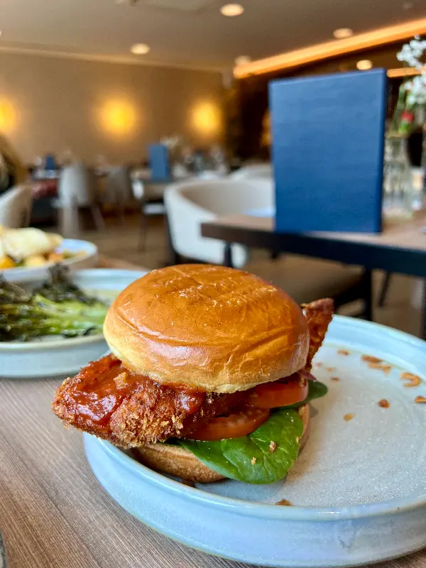 Lock 84는 애프터눈 티뿐만 아니라, 다채로운 스몰 플레이트 메뉴로도 유명합니다. 친구와 함께 저녁 식사를 위해 방문했을 때, 저희는 다양한 스몰 플레이트 메뉴를 주문하여 맛보았습니다. 특히 인상 깊었던 메뉴는 구운 대구, 수박 샐러드, 그리고 빔토 칠리 잼을 곁들인 치킨 버거였습니다.