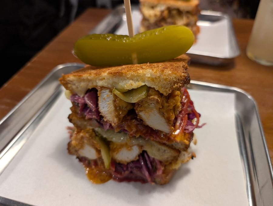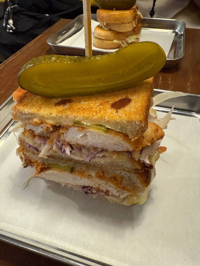 특히, ‘뱅뱅 치킨 샌드위치’는 새로운 메뉴 중에서도 단연 돋보이는 존재였습니다. “제가 먹어본 샌드위치 중 최고였다”는 극찬처럼, 바삭한 치킨과 매콤달콤한 소스의 조화, 그리고 치즈의 풍부함이 어우러져 완벽한 맛의 균형을 이루었습니다. 샌드위치 위에 큼지막하게 올라간 피클은 시각적으로도 식욕을 돋우는 포인트가 됩니다.