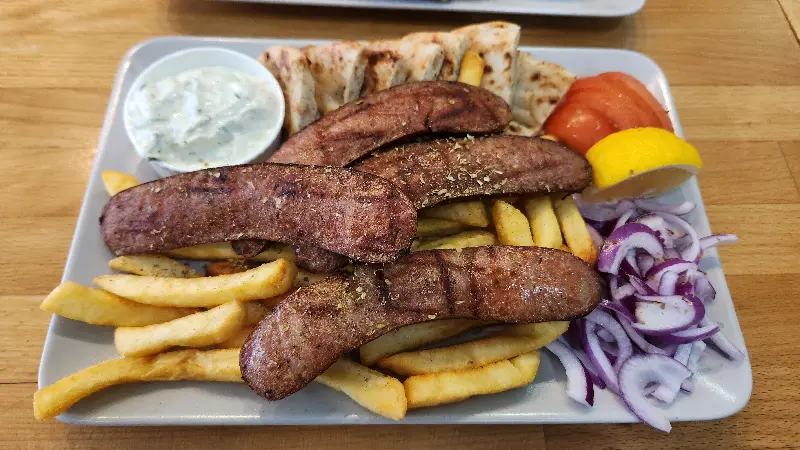 다음으로 맛본 수블라키는 자이로와는 또 다른 매력을 지니고 있었습니다. 숯불 향이 은은하게 배어 있는 꼬치구이는 겉은 바삭하고 속은 촉촉했습니다. 특히, 함께 제공되는 차치키 소스는 수블라키의 풍미를 더욱 깊게 만들어주었습니다. 시원하고 상큼한 차치키 소스는 꼬치구이의 느끼함을 잡아주어, 끊임없이 먹게 만드는 마성의 매력을 지니고 있었습니다.