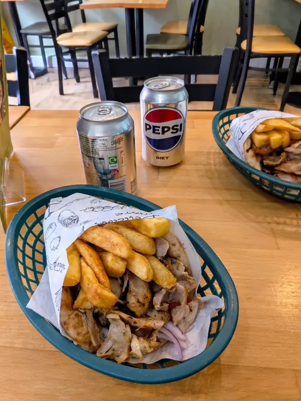 미트 더 수블라키의 또 다른 매력은 바로 훌륭한 가성비입니다. 맨체스터처럼 물가가 높은 도시에서, 이렇게 훌륭한 퀄리티의 음식을 합리적인 가격으로 즐길 수 있다는 것은 정말 놀라운 일이었습니다. 자이로, 음료, 그리고 케이크까지 포함된 세트 메뉴는 단돈 10파운드 정도였습니다. 이 가격에 이렇게 푸짐하고 맛있는 음식을 즐길 수 있다는 사실에 감탄하지 않을 수 없었습니다.
