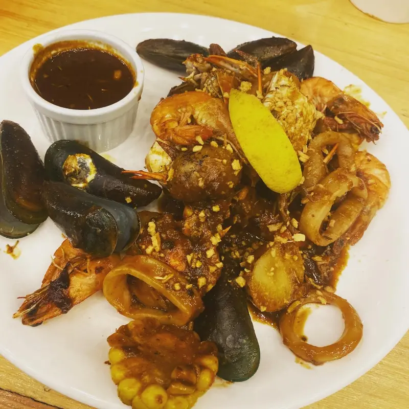 첫 입을 입에 넣는 순간, 감탄사가 절로 나왔다. 케이준 소스의 매콤하면서도 깊은 풍미가 입안 가득 퍼져나갔고, 신선한 해산물의 쫄깃한 식감은 즐거움을 더했다. 특히 톡 쏘는 레몬 조각은 느끼함을 잡아주면서, 해산물의 풍미를 더욱 끌어올렸다. 함께 제공된 소스에 찍어 먹으니, 그 맛은 더욱 환상적이었다.