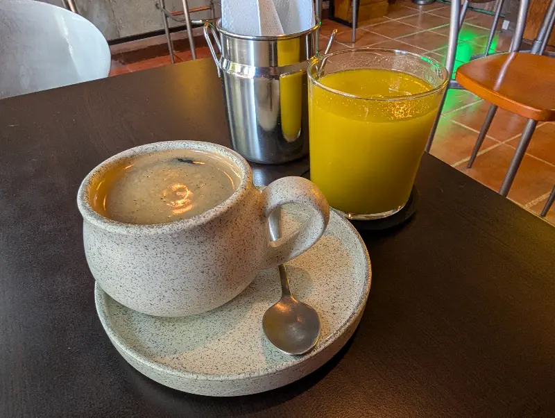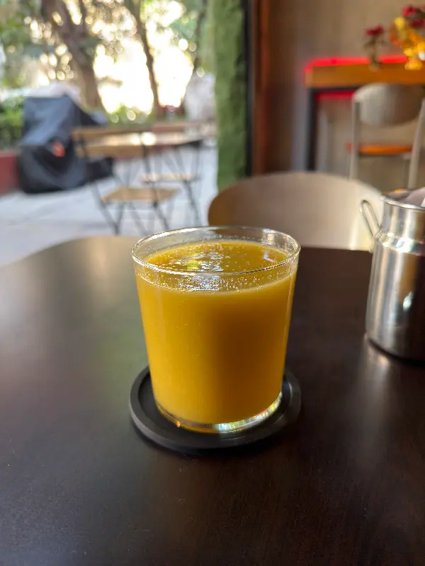 고민 끝에 브런치 메뉴로 카페 아메리카노와 후고 아마리요, 그리고 칠라킬레스 콘 토푸 아 라 멕시카나를 주문했다. 먼저 나온 후고 아마리요는 샛노란 색감부터 시선을 사로잡았다. 테이블에 놓이자마자 상큼한 향이 은은하게 퍼져 나갔다. 한 모금 마시니 입안 가득 퍼지는 달콤함과 신선함! 텁텁함 없이 깔끔하게 마무리되는 맛이 일품이다. 쌉싸름한 아메리카노 한 모금으로 입안을 정리하니, 완벽한 조화가 느껴진다.