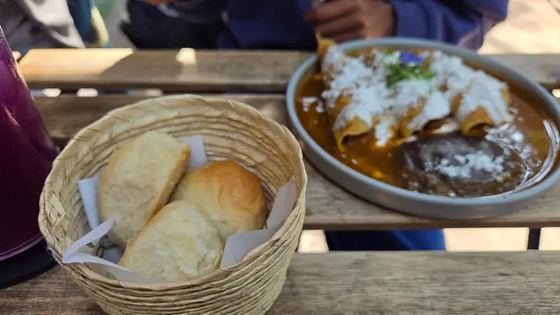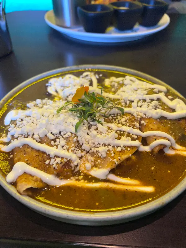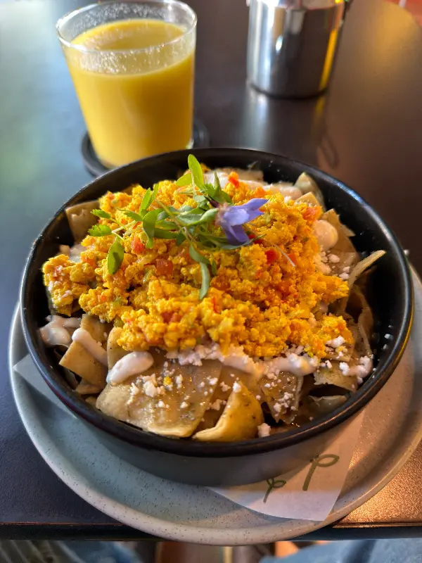 포크로 살짝 찍어 한 입 맛보니, 바삭한 토르티야 칩의 식감과 매콤한 살사 소스의 조화가 환상적이다. 특히, 부드러운 두부는 칠라킬레스의 풍미를 더욱 깊게 만들어준다. 멕시코의 맛을 그대로 느낄 수 있는 완벽한 메뉴다. 다만, 한 방문객은 칠라킬레스가 조금 짜고 양이 적었다고 언급했는데, 내가 방문했을 때는 딱 적당한 간과 푸짐한 양으로 만족스러웠다.