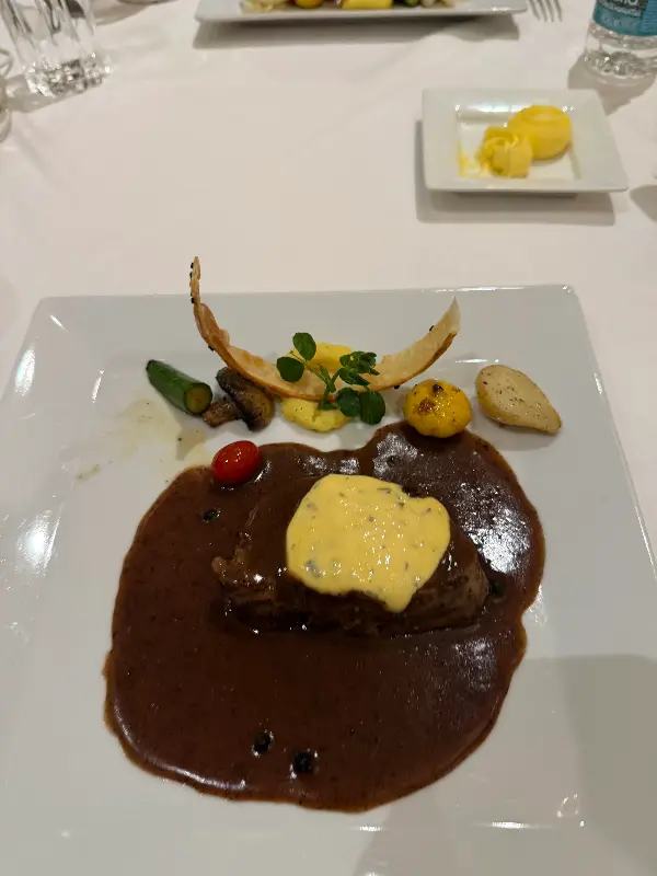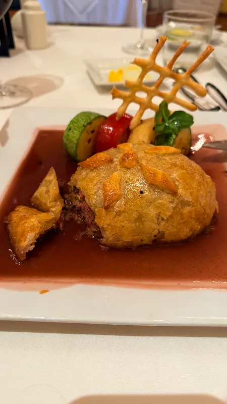 Les Moustaches는 다양한 프랑스 요리를 선보입니다. 특히 비프 웰링턴은 이곳의 대표 메뉴 중 하나로, 바삭한 페이스트리와 육즙 가득한 고기의 조화가 일품입니다. 한 고객은 자신이 먹어본 최고의 비프 웰링턴이라고 극찬하며 10점 만점에 20점을 주고 싶다고 표현했습니다. 소고기 육수와 양파 수프 또한 깊고 풍부한 맛으로 많은 사랑을 받고 있습니다. 애피타이저부터 디저트까지, 모든 요리에서 프랑스 요리의 정수를 느낄 수 있습니다.