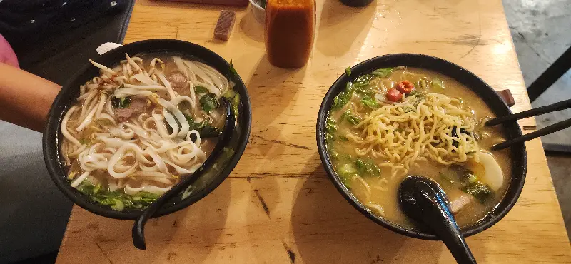 진한 국물이 인상적인 돈코츠 카레 라멘과 푸짐한 양의 포 사이공. 라멘과 쌀국수 모두 훌륭한 맛을 자랑한다.