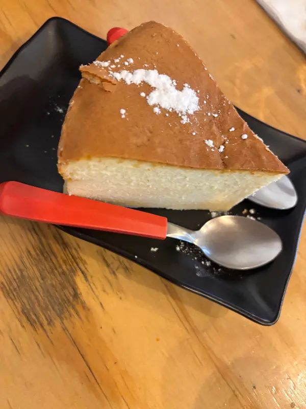 식사를 마치고 디저트로 일본식 치즈 케이크를 주문했습니다. 포슬포슬하고 부드러운 식감과 입안에서 사르르 녹는 듯한 달콤함은 잊을 수 없는 맛이었습니다. 특히 쌉쌀한 커피와 함께 먹으니, 달콤함이 더욱 깊어지는 느낌이었습니다.