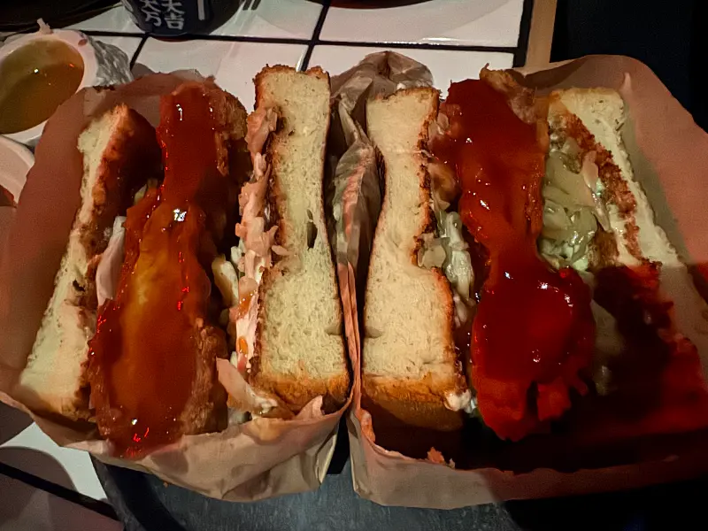 카이토는 칵테일뿐만 아니라, 다양한 종류의 일본 요리도 제공합니다. 갓 튀겨낸 따뜻한 교자, 신선한 재료로 만든 스시, 부드러운 돈까스 산도 등, 일본의 맛을 그대로 느낄 수 있는 메뉴들이 준비되어 있습니다. 저는 교자와 돈까스 산도를 주문했습니다.