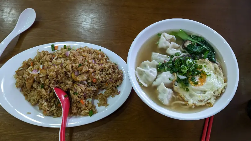 양이 푸짐해서, 여러 명이 함께 방문하여 다양한 메뉴를 맛보는 것을 추천합니다. 만두, 라면, 볶음밥 등 다양한 요리를 골고루 시켜, 푸짐하게 즐기다 보면 어느새 배가 빵빵해지는 경험을 할 수 있습니다. 넉넉한 인심 덕분에, 더욱 풍족하고 만족스러운 식사를 즐길 수 있습니다. 이미지 4는 메뉴판을 보여주는데, 다양한 면 요리, 볶음 요리, 만두 외에 찐빵과 같은 요리도 판매하는 것을 알 수 있습니다.
