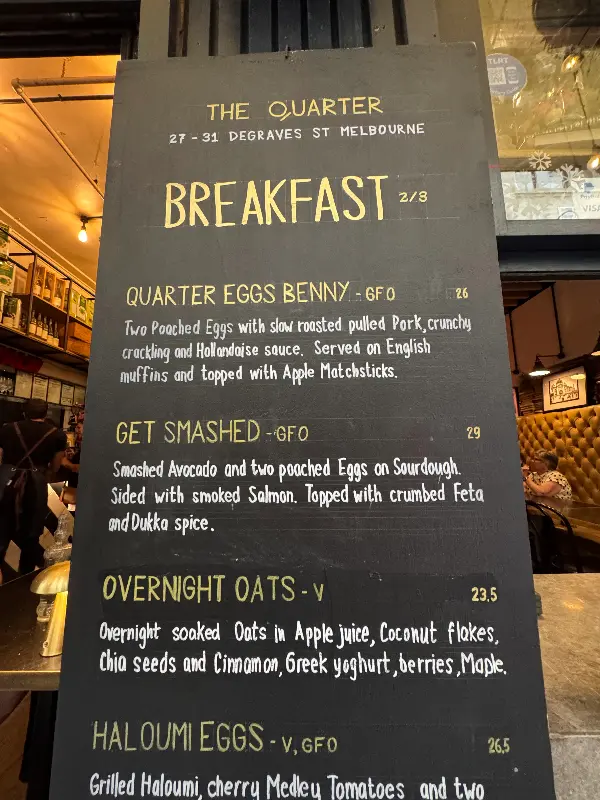 커피 또한 완벽했습니다. 풍부한 아로마와 부드러운 맛은, 멜버른에서의 하루를 시작하기에 완벽한 선택이었습니다. 커피를 마시면서 저는 The Quarter의 분위기를 더욱 깊이 느낄 수 있었습니다. 주변 사람들의 웃음소리, 커피 향, 그리고 맛있는 음식 냄새가 어우러져, 멜버른에서의 특별한 추억을 만들어주었습니다.