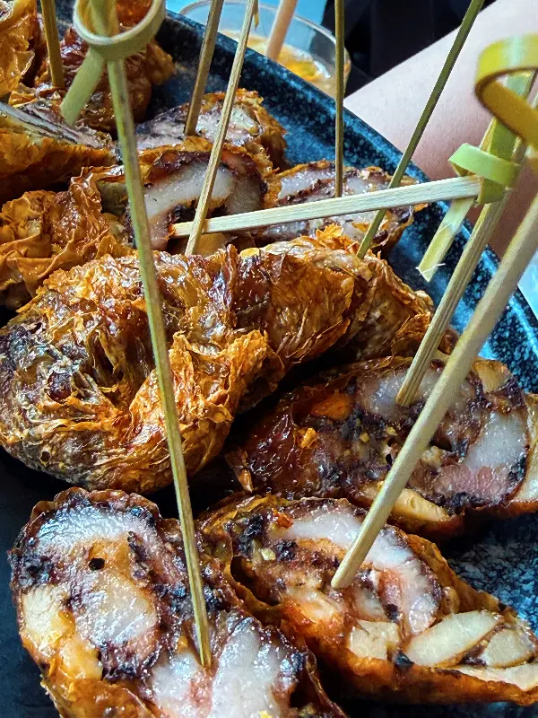 이어서 맛본 소금에 절인 오리알 오징어 튀김은, 겉은 바삭하고 속은 쫄깃한 식감이 일품이었습니다. 짭짤하면서도 고소한 오리알의 풍미가 오징어와 어우러져, 전에 맛보지 못했던 독특하면서도 매력적인 맛을 선사했습니다. 튀김옷은 과하지 않게 얇고 바삭해서, 오징어 본연의 맛을 해치지 않으면서도 완벽한 조화를 이루었습니다. 짭짤한 맛 덕분에 맥주 안주로도 제격이었습니다.