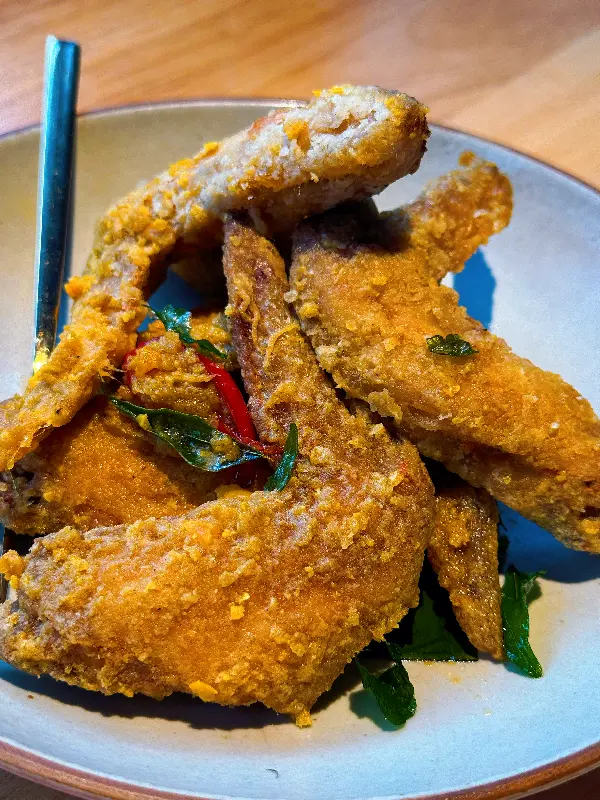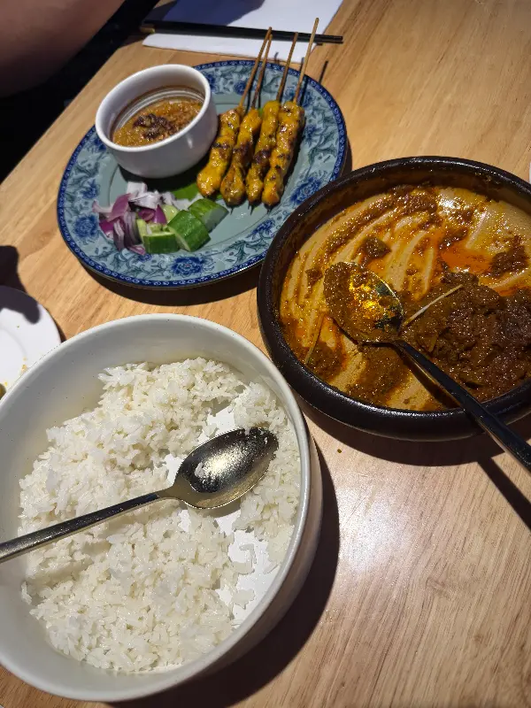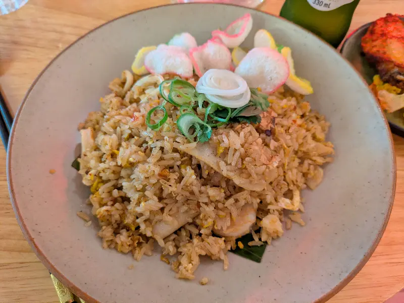 다른 날 점심시간에 방문했을 때는, 친구와 함께 예약을 하지 않고 방문했는데, 다행히 12시 직후라 금방 자리를 잡을 수 있었습니다. 점심 특선 메뉴인 나시고렝과 닭 날개를 주문했는데, 마침 점심 맥주가 다 떨어져서 스텔라 아르투아 맥주를 마실 수 있었습니다. 나시고렝은 레몬그라스 향이 은은하게 풍겨 정말 맛있었고, 닭고기와 다른 부위도 모두 훌륭했습니다. 저렴하고 맛있는 식사였기에 강력 추천합니다!