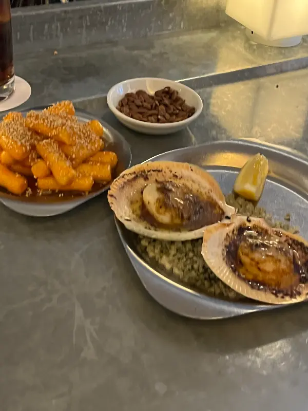Supernormal에서 꼭 맛봐야 할 메뉴 중 하나는 스캘롭(관자) 요리입니다. 사진(Image 1, 2)에서 볼 수 있듯이, 겉은 살짝 구워져 탱글탱글한 식감을 자랑하고, 속은 촉촉하고 부드러워 입안에서 살살 녹습니다. 특히 퓨전 스타일로 재해석한 김치는 시원하면서도 깊은 맛이 일품입니다. 젓갈 맛이 적절히 가미된 김치는 느끼할 수 있는 해산물의 맛을 완벽하게 잡아줍니다. 관자구이의 풍미와 김치의 시원함, 이 두 가지 맛의 조화는 Supernormal에서만 경험할 수 있는 특별한 맛입니다.