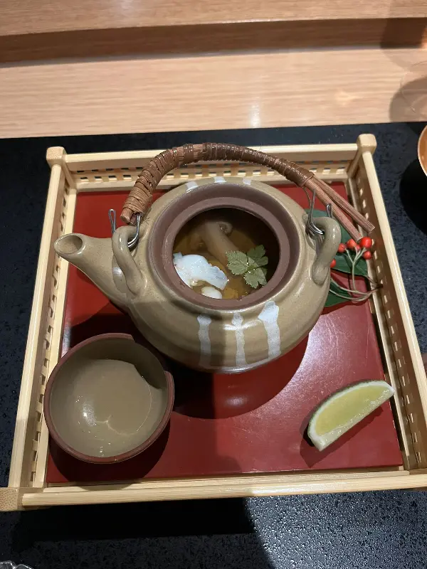 제철 식재료를 사용한 굴, 오토로 스시, 캐비어, 튀김, 게살 등 신선하고 다채로운 요리들이 끊임없이 이어졌습니다. 특히, 구마모토산 A5 와규는 입에서 살살 녹는 듯한 부드러운 식감과 풍부한 육즙이 일품이었습니다. 소고기를 즐기지 않는 남편을 위해 준비된 그린립 전복 또한 신선하고 쫄깃한 식감이 훌륭했습니다.