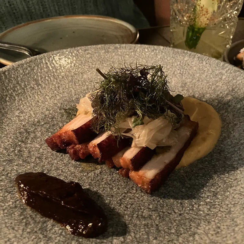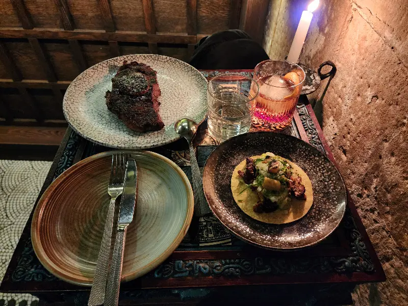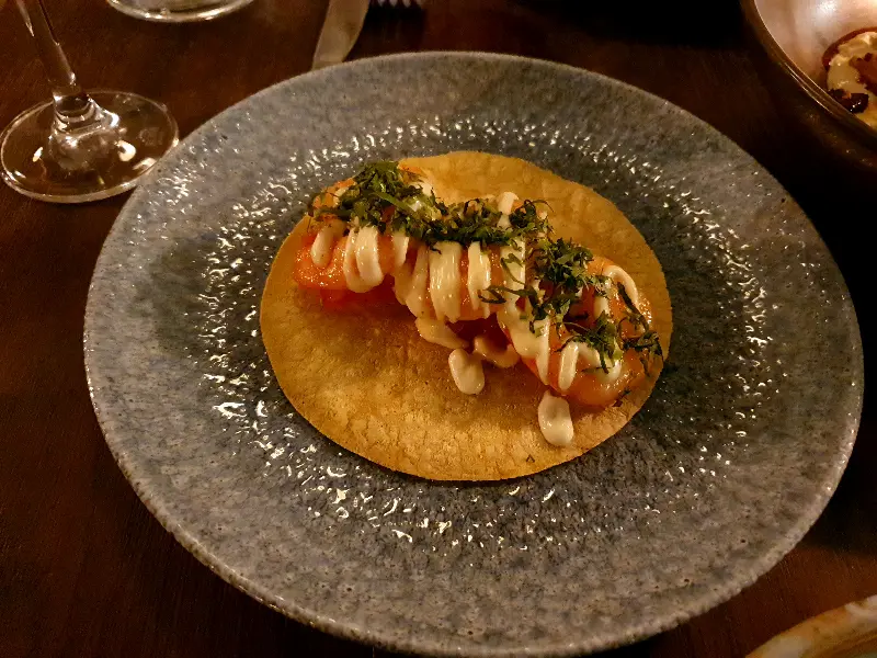 세비체의 여운이 가시기도 전에, 두 번째 요리인 Steak tartare taco가 등장했다. 겉은 바삭하고 속은 촉촉한 타코 위에 신선한 스테이크 타르타르와 사워소스가 듬뿍 올려져 있는 모습은 그야말로 예술이었다.