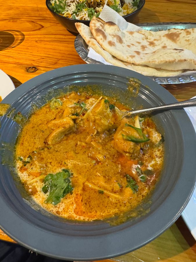 음식 맛은 정말 훌륭했지만, 제 입맛에는 조금 매웠습니다. 하지만 매운 음식을 즐기는 저에게는 오히려 긍정적인 요소로 작용했습니다. 뼈 없는 치킨 비리야니, 슈퍼 바비큐 플래터, 치킨 카라이 등 다른 메뉴들도 모두 따뜻하고 잘 익었으며 기름기도 적당했습니다.
