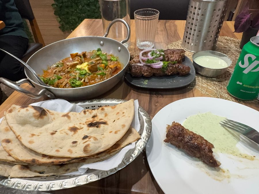 문을 열자마자 코를 찌르는 듯한 강렬한 향신료의 향기가 저를 맞이했습니다. 마치 파키스탄 현지에 와 있는 듯한 착각을 불러일으키는 묘한 분위기였죠. 테이블은 7~8개 정도의 아담한 규모였지만, 따뜻한 조명과 아늑한 분위기가 편안함을 더했습니다. 곧 친절한 직원이 다가와 메뉴를 안내해 주었고, 저는 고민 끝에 가장 인기 있다는 치킨 케밥과 양고기 카라이를 주문했습니다.