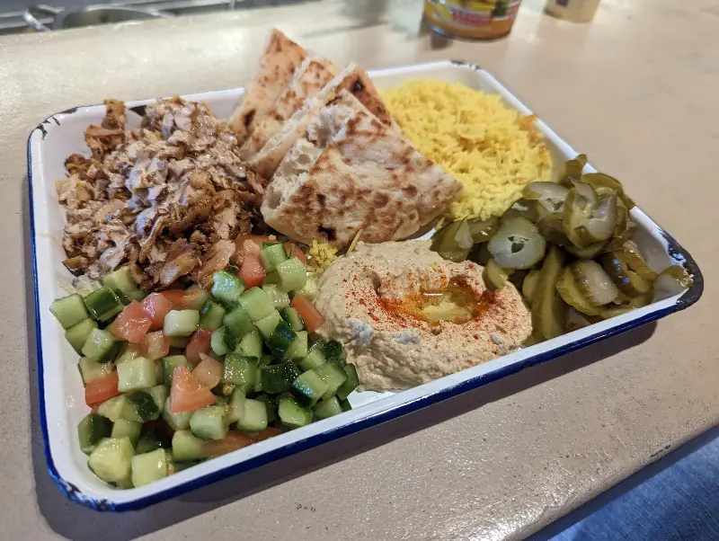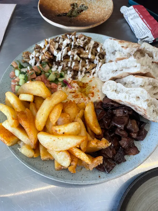 가장 먼저 눈에 들어온 건 슈와르마였다. 한눈에 보기에도 푸짐한 양에 감탄하며, 치킨 슈와르마를 주문했다. 따뜻하게 구워진 피데 위에 얹어진 촉촉한 치킨, 신선한 야채, 그리고 타블린만의 특별한 소스가 어우러져 환상적인 맛을 냈다.
