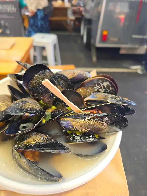퀸 빅토리아 마켓의 활기 넘치는 풍경 속에서, 유독 눈길을 끄는 곳이 있다. 바로 ‘The Mussel Pot’. 싱싱한 홍합과 다채로운 소스의 향연이 미식가들의 발길을 사로잡는 이곳은, 멜버른 여행에서 빼놓을 수 없는 맛집으로 자리매김했다. 여행 전부터 수많은 후기를 통해 그 명성을 익히 들어왔지만, 직접 경험해보니 그 기대는 훨씬 뛰어넘는 감동으로 다가왔다. 마켓의 북적거림을 뚫고 드디어 마주한 The Mussel Pot. 그 생생한 맛의 여정을 지금부터 펼쳐보려 한다.