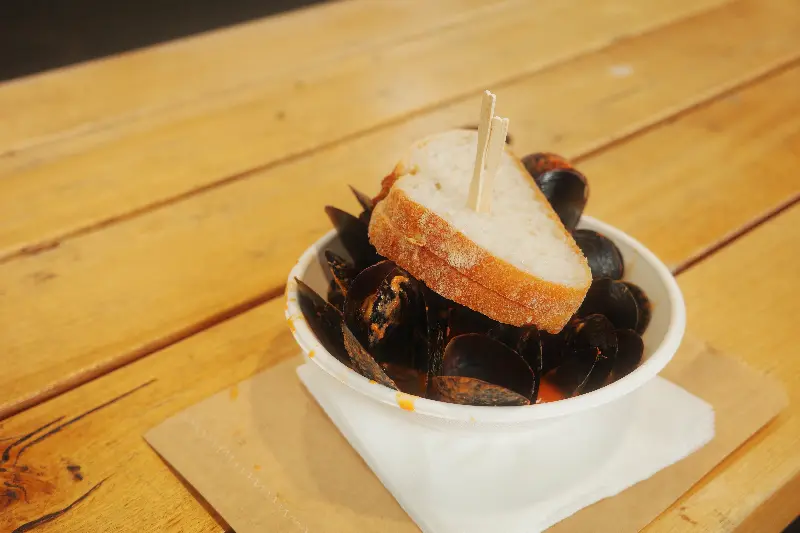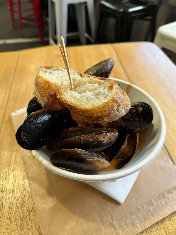 드디어 The Mussel Pot 앞에 도착했을 때, 이미 많은 사람들이 홍합찜을 즐기고 있었다. 테이블마다 놓인 커다란 그릇에는 윤기가 흐르는 홍합들이 가득 담겨 있었고, 그 모습을 보는 것만으로도 군침이 돌았다. 특히 매콤한 코코넛 밀크 육수에 담긴 홍합찜은 그 강렬한 색감과 향으로 시선을 압도했다.