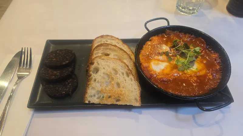 블랙 푸딩은 겉은 검은색이지만, 속은 부드럽고 고소했습니다. 생각보다 훨씬 맛있어서 놀랐습니다. 곁들여 나온 빵과 함께 먹으니, 든든한 한 끼 식사로도 손색이 없었습니다.