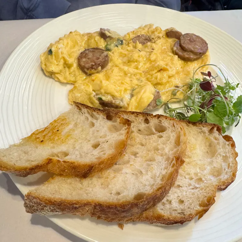 크레페 위에 뿌려진 슈가파우더는 달콤함을 더해주었고, 곁들여 나온 커피는 입안을 깔끔하게 마무리해주었습니다. 크레페를 먹는 동안, 창밖으로 보이는 멜버른의 풍경은 더욱 아름답게 느껴졌습니다.