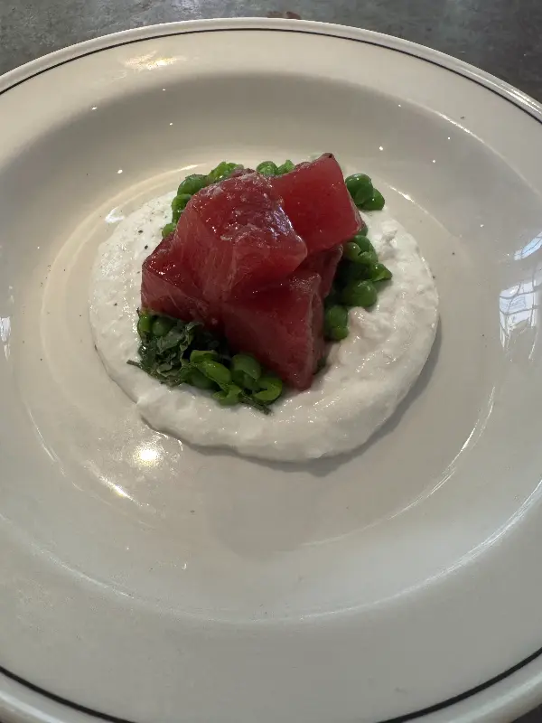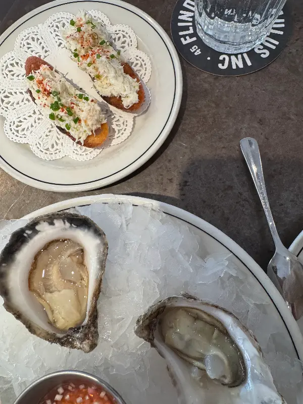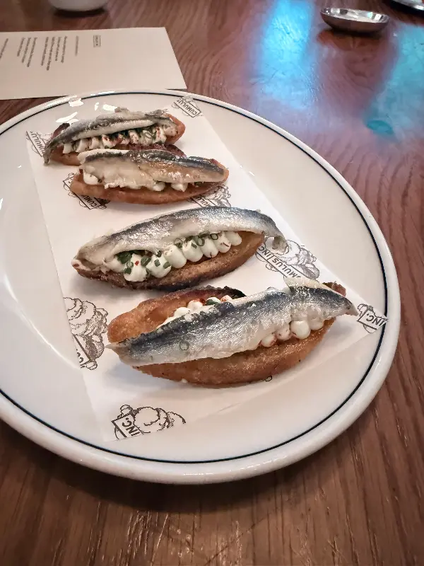 메뉴를 펼쳐 들고 고민에 빠졌다. 다양한 메뉴들 속에서 무엇을 선택해야 후회하지 않을까? 결국 직원분의 추천을 받아 인당 75불짜리 코스 메뉴(쉐어)를 선택했다. 결론부터 말하자면 최고의 선택이었다. 앤초비와 참치 타르타르를 시작으로, 입안에서 살살 녹는 양고기, 신선한 해산물까지, 다채로운 맛의 향연이 펼쳐졌다. 특히 양고기는 반 마리를 시켰는데, 양이 다소 많았지만, 너무 부드럽고 풍미가 훌륭했다. 굴 해피아워를 놓친 건 아쉬웠지만, 훌륭한 맛으로 충분히 위로받을 수 있었다.