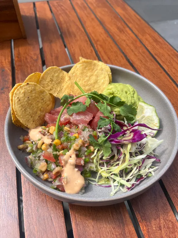 샐러드와 생 참치 볼, 가벼운 식사를 위한 완벽한 선택