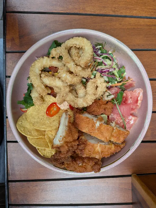 Beer Deluxe는 푸짐한 메인 메뉴뿐만 아니라, 가볍게 즐길 수 있는 샐러드와 생 참치 볼도 제공합니다. 시저 샐러드는 신선한 야채와 드레싱의 조화가 훌륭하며, 튀긴 닭고기와 소금 후추 오징어를 곁들인 생 참치 볼은 일반적인 펍 음식에 비해 가벼운 식사를 원하는 사람들에게 안성맞춤입니다.