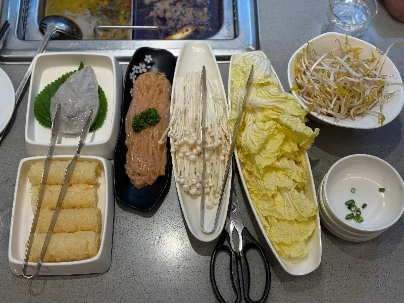각자 선택한 탕에 재료를 넣어 맛을 음미하는 시간은 즐거움의 연속이었다. 얼큰한 마라탕은 특유의 얼얼한 매운맛이 일품이었고, 깊고 진한 버섯탕은 은은한 버섯 향이 입안 가득 퍼졌다. 토마토탕은 신선하면서도 새콤달콤한 맛이 매력적이었고, 후추탕은 깔끔하면서도 깊은 맛으로 입맛을 돋우었다.