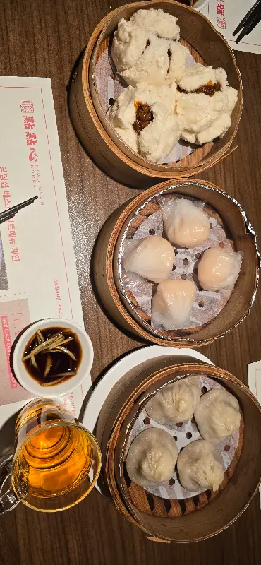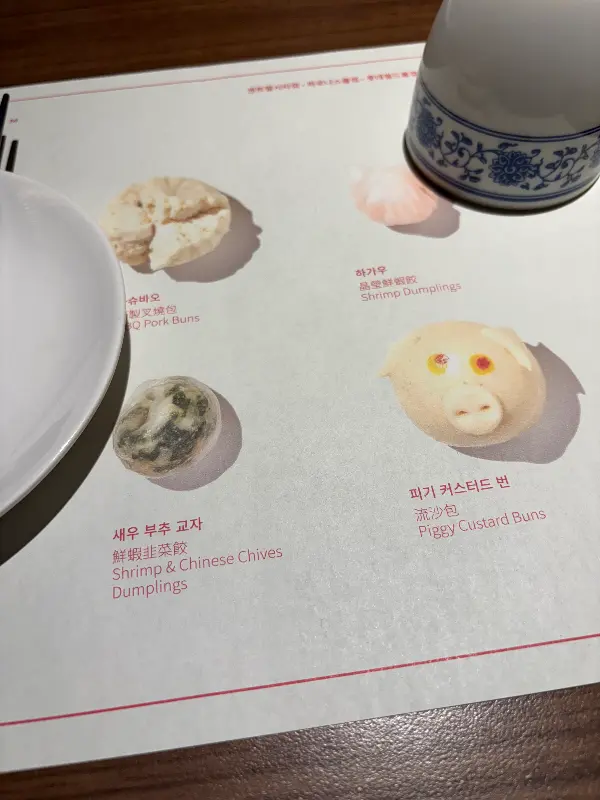 메뉴판을 펼쳐 들고, 어떤 딤섬을 맛볼까 행복한 고민에 빠졌다. 샤오롱바오, 하가우, 부추딤섬, 청펀… 다 먹음직스러워 보이는 메뉴들 앞에서 결정을 내리기가 쉽지 않았다. 결국, 가장 인기 있는 메뉴들을 중심으로 몇 가지를 골라 주문했다. 주문을 마치자, 따뜻한 차가 먼저 나왔다. 은은한 차 향기가 입안을 맴돌면서, 딤섬을 맛볼 준비를 마쳤다.