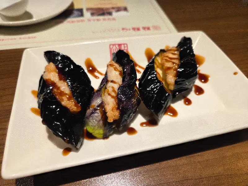 가지 딤섬은 가지 안에 새우 살을 넣어 튀긴 딤섬이었다. 겉은 바삭하고 속은 촉촉한 가지와 탱글탱글한 새우 살의 조화가 훌륭했다. 특히, 가지 특유의 향긋함이 딤섬의 풍미를 더욱 깊게 만들어 주었다. 딤섬 위에 뿌려진 달콤 짭짤한 소스는 맛을 한층 더 끌어올렸다.