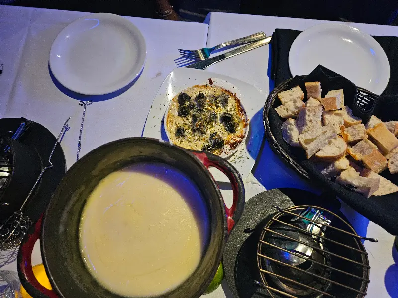 따뜻하게 데워진 치즈 퐁듀와 신선한 빵의 조화는 환상적이다.