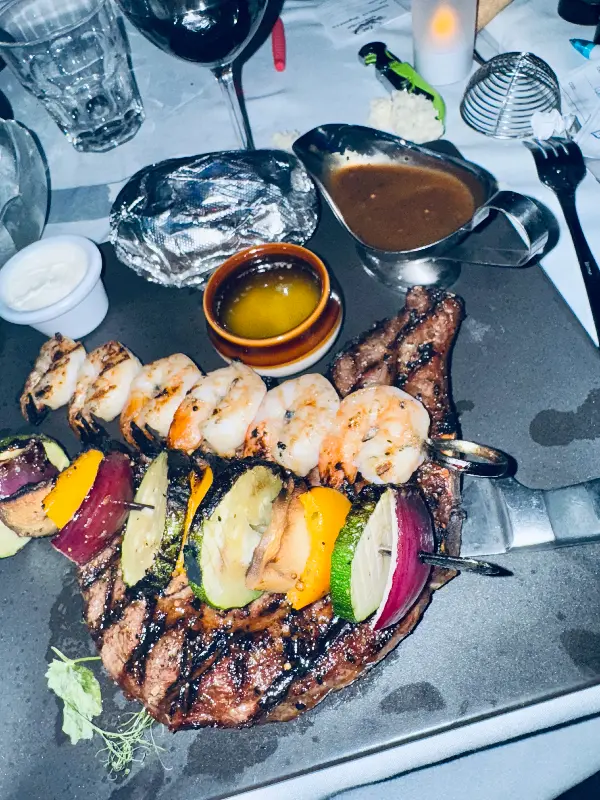 스테이크와 새우, 야채 꼬치의 조화. 푸짐한 양과 훌륭한 맛에 감탄했다.