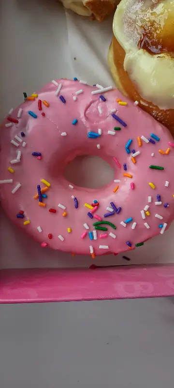 핑크빛 슈가 코팅 위에 알록달록한 스프링클이 흩뿌려진 도넛은 보기만 해도 행복해지는 비주얼이다.