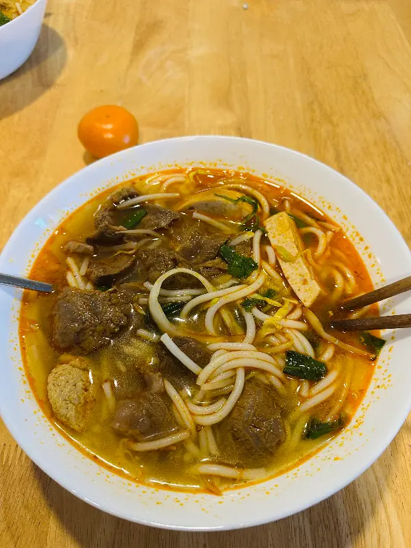 매콤한 소고기 쌀국수는 깊고 진한 국물 맛이 일품입니다. 쫄깃한 면발과 부드러운 소고기의 조화는 훌륭하며, 매콤한 국물은 추위를 잊게 해줍니다. 특히 쌀국수에 곁들여 먹는 신선한 채소는 입 안을 상쾌하게 해줍니다.