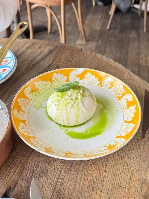 핑크맘마에서 맛본 또 다른 메뉴는 바로 부라타 치즈입니다. 겉은 쫄깃하고 속은 부드러운 부라타 치즈는 신선한 우유의 풍미가 가득 느껴집니다. 특히, 핑크맘마의 부라타 치즈는 바질 페스토와 함께 제공되어, 상큼하면서도 향긋한 맛을 더합니다. 부라타 치즈를 한 입 크기로 잘라 입에 넣는 순간, 톡 터지는 듯한 식감과 함께 신선한 우유의 풍미가 입 안 가득 퍼져 나갑니다. 핫라인 피자와 함께 먹으니, 매콤함과 고소함이 어우러져 더욱 맛있게 즐길 수 있었습니다.