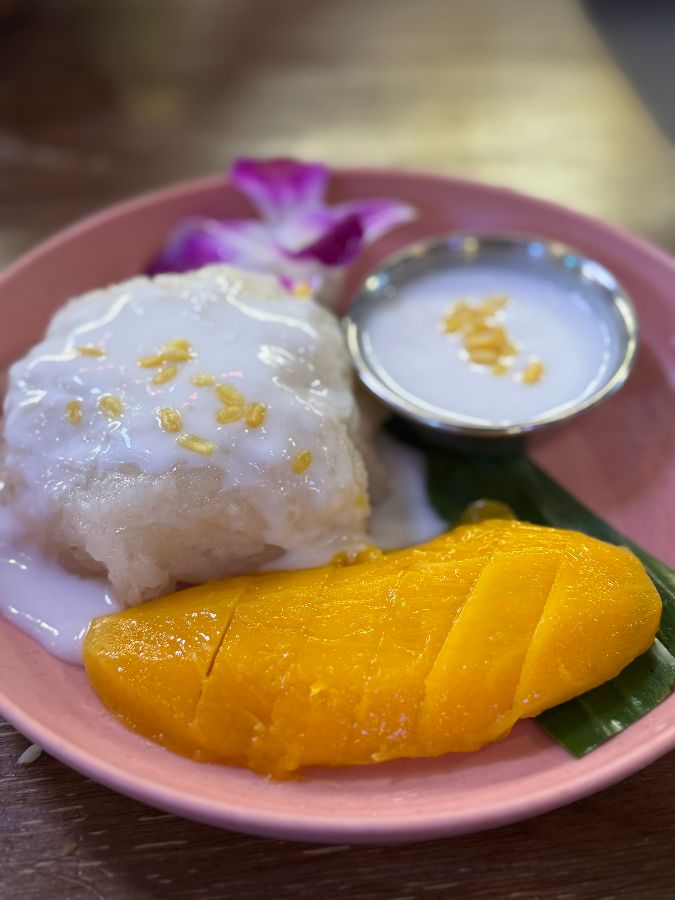 풍성한 식사에는 완벽한 음료가 빠질 수 없습니다. 타마린드에서는 달콤하고 시원한 태국식 밀크티(Image 12)를 비롯해 다양한 현지 음료를 맛볼 수 있습니다. 짙은 오렌지색의 밀크티는 달콤하면서도 진한 홍차 향이 입안을 감돌며, 매콤한 음식과 환상의 궁합을 자랑합니다. 식사 후에는 망고 스티키 라이스(Image 15)와 같은 태국 전통 디저트로 깔끔하게 마무리할 수 있습니다. 달콤한 망고와 쫀득한 찹쌀밥, 고소한 코코넛 밀크가 어우러진 이 디저트는 태국의 맛을 완벽하게 마무리해 주는 선물과도 같습니다.