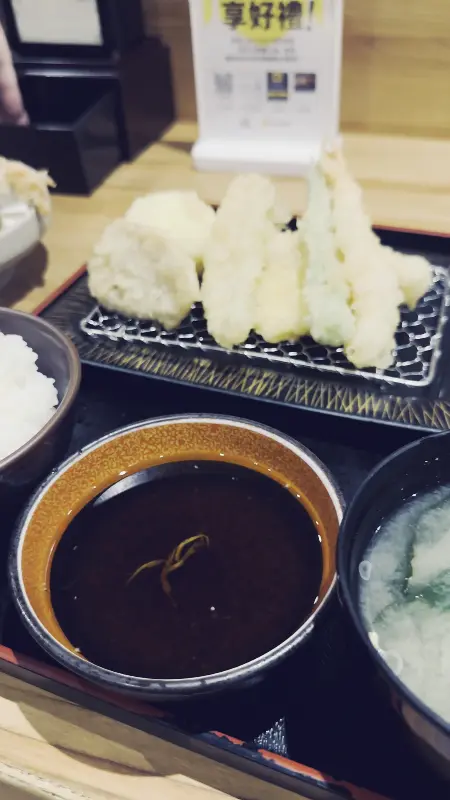 토요일 오후 2시 30분, 늦은 점심시간이었음에도 불구하고 식당 안은 이미 사람들로 가득했다. 빈자리를 찾기 힘들 정도였으니, 이곳의 인기를 실감할 수 있었다. 활기찬 분위기 속에서 들려오는 튀김 튀기는 소리는 식욕을 더욱 자극했다. 테이블에 앉아 QR 코드를 스캔하여 메뉴를 살펴보았다. 다양한 튀김 정식 메뉴들이 눈에 띄었는데, 처음 방문하는 나를 위해 지인이 추천해준 산카이 정식을 주문하기로 했다.