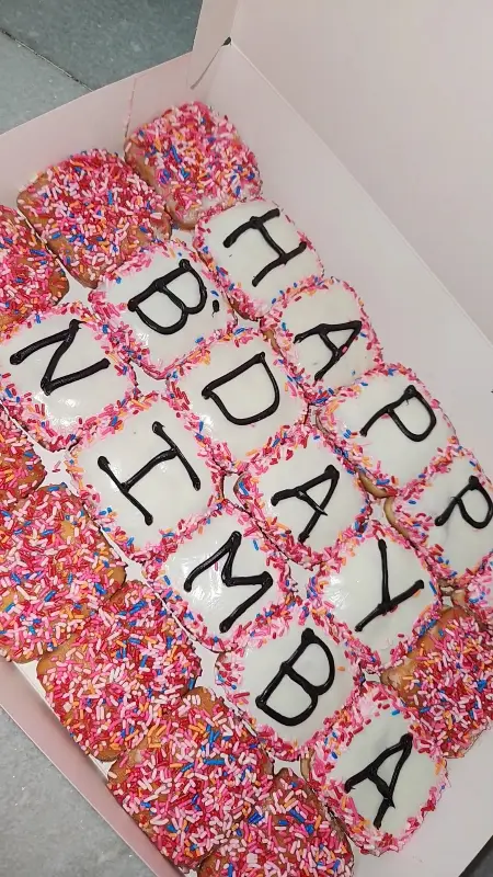 특별한 날을 더욱 특별하게 만들어주는 맞춤 도넛. 원하는 문구와 디자인으로 세상에 하나뿐인 도넛을 주문할 수 있다.