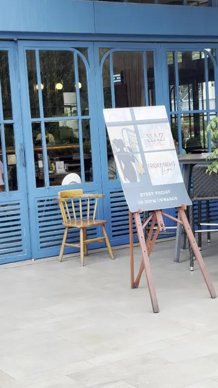 SAZ는 특별한 날을 기념하기 위한 완벽한 선택입니다. 세련된 분위기, 훌륭한 음식, 그리고 친절한 서비스는 잊을 수 없는 추억을 만들어줍니다. 생일, 기념일, 또는 특별한 날을 더욱 특별하게 만들고 싶다면 SAZ를 방문해 보세요. 파란색 프레임의 문과 SAZ 안내판이 당신을 맞이할 겁니다.