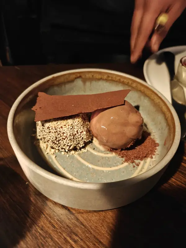 슬링크 서머는 또 다른 감동을 선사했습니다. 싱그러운 여름 채소와 허브가 조화롭게 어우러져 입 안 가득 신선함이 느껴졌습니다. 특히 인상적이었던 것은 바삭하게 튀겨진 매시 포테이토였습니다. 겉은 바삭하고 속은 부드러운 완벽한 식감과 섬세한 맛은 잊을 수 없는 경험이었습니다. 포테이토 위에 올려진 크리미한 소스와 신선한 허브는 풍미를 한층 더 끌어올렸습니다.